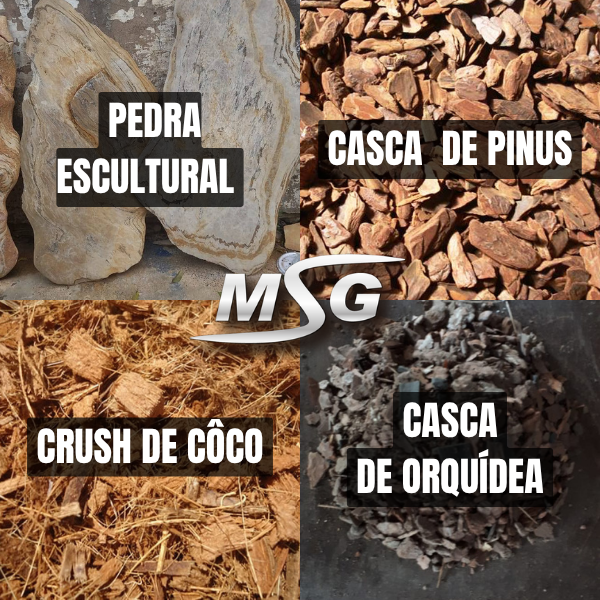 Pedra Escultural, Cascas (pinus / orquídea) Casca decorativa, Crush de coco entre outros (Confira no catálogo)- Ideal para jardins residenciais